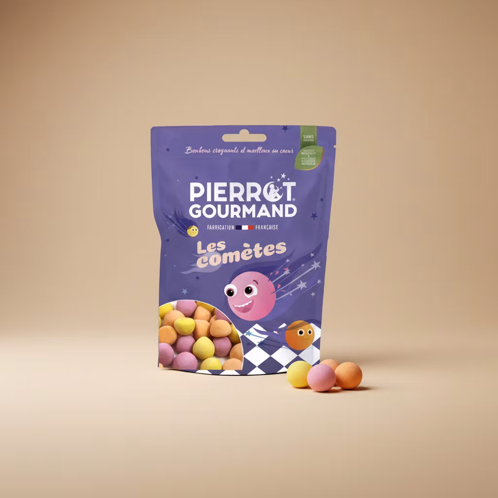 Innehållsförteckning: socker, glukossirap, stärkelse, surhetsreglerande medel: citronsyra, äppelsyra, surhetsreglerande medel: natriummalater, natriumcitrater, hydrolyserat vegetabiliskt protein, naturliga aromer, naturlig hallonarom, färgämnen av safflor, citron, paprika, morot och sötpotatis, ytbehandlingsmedel: gummi arabicum. VETESTÄRKELSE. Glukossirap från EU.
