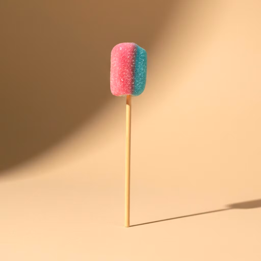 En somrig vattenmelonsmak kombinerat med vår härligt sura sockerklubba. Sockerklubban är försedd med cellofan.